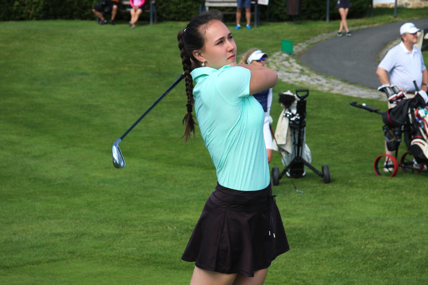 V ženské kategorii nadále dominují hráčky ze zbraslavského Prague City GC. Sára Kousková se dnes ponořila čtyři údery pod par, hrála 68 ran s pěti birdie a jediným bogey je na prvním místě (-4).