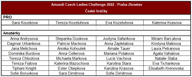 Šestý ročník Czech Ladies Challenge se uskuteční opět na hřišti Prague City Golf Clubu v Praze Zbraslavi. V turnaji bude nejvíce sledovaná loňská suverénní vítězka Sára Kousková, dále aktuální jednička žebříčku Colombotto Rosso. Sára Kousková právě ukončila amatérskou kariéru a na Zbraslavi bude poprvé hrát jako profesionálka.