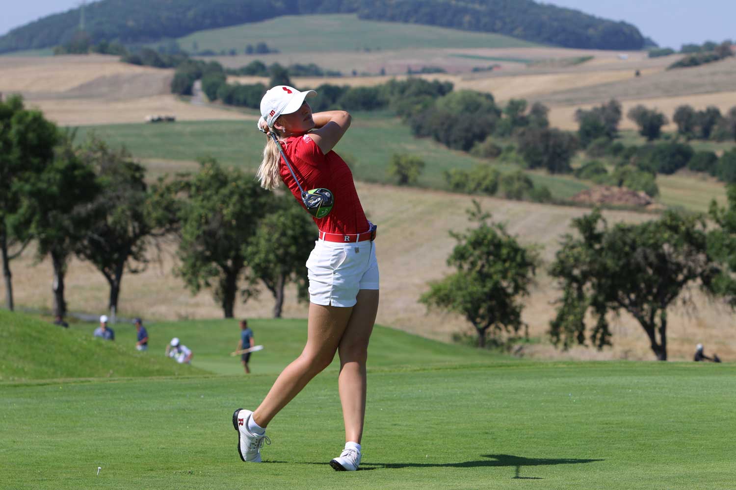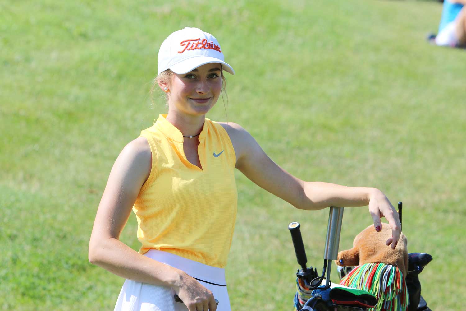 V druhé kole startovaly jako první ženy. Dnes zazářila Češka Kristýna Frýdlová. Eagle, devět birdie a dvě bogey znamenají 63 ran, devět pod par hřiště, životní skore kola Frýdlové a rekordní ženský výsledek na Karlštejně. O dvě rány zpět je světová amatérská jednička Pauline Roussin-Bouchard (-9). Na třetí místo se postavila Denisa Vodičková (-7).