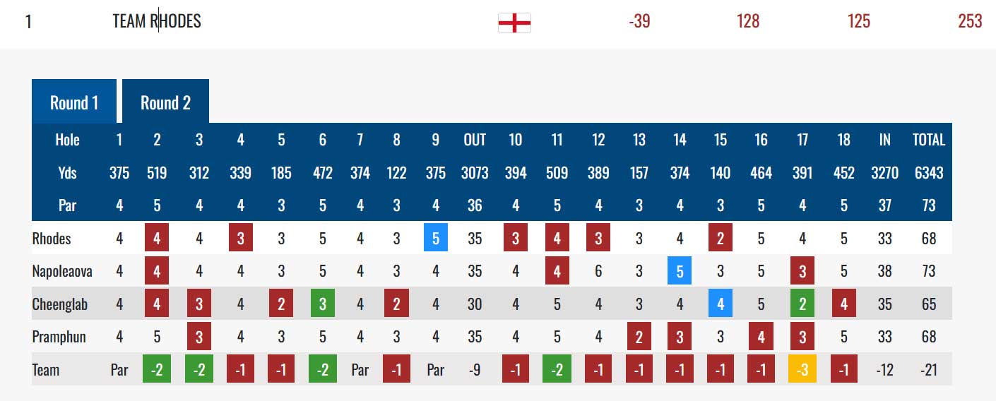 Tým kapitánky Rhodes s Kristýnou Napoleaovou je na 3. místě  (-18).