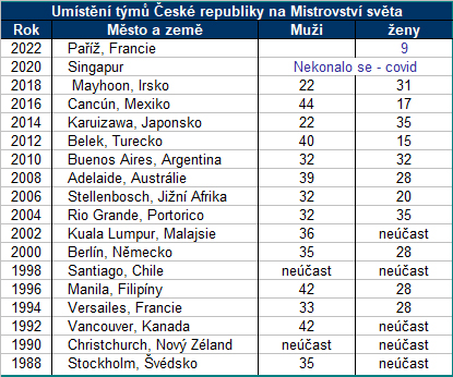Obrovský úspěch – tým ČR veze z Francie žen 9. místo, historicky nejlepší umístění na Mistrovství světa. Doposud bylo nejlepší umístění 15. místo v tureckém Beleku roce 2012.